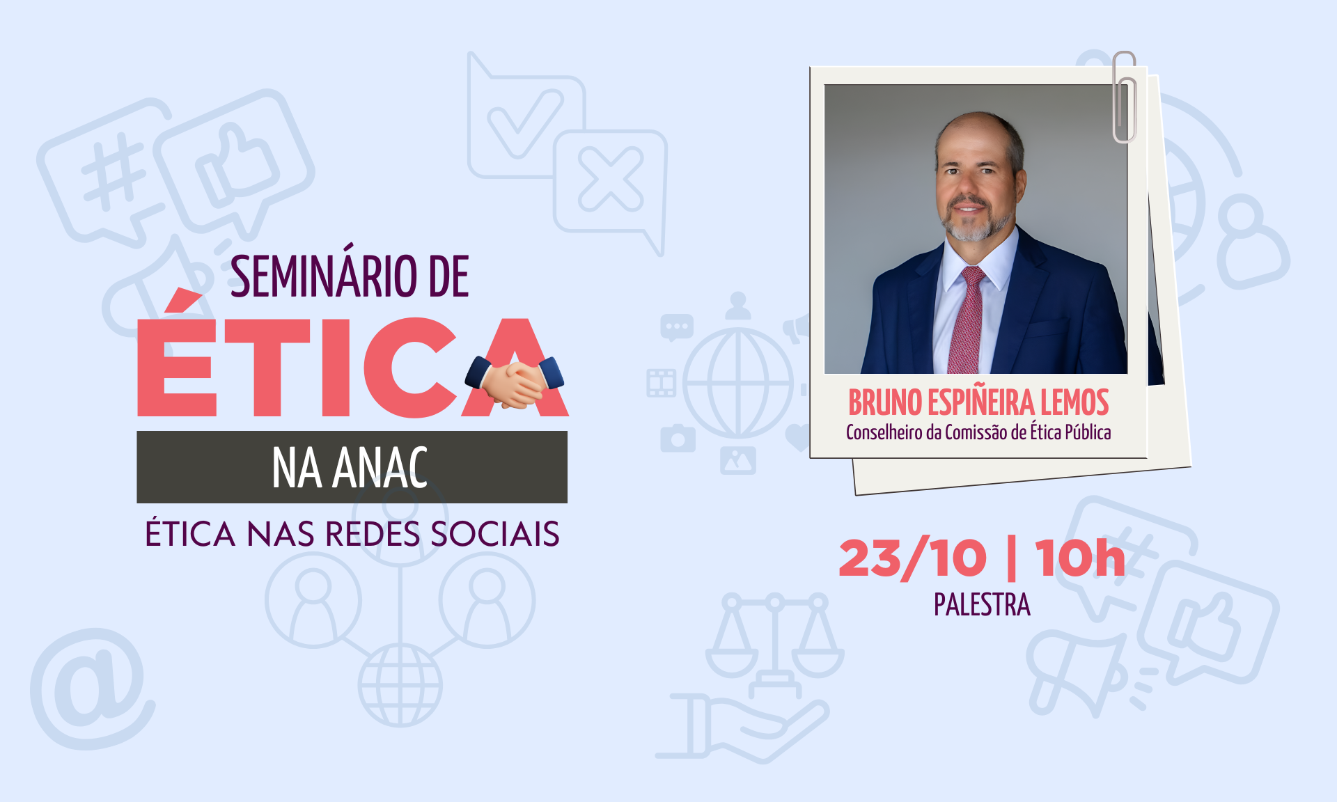 Órgão ao qual a comissão de ética setorial promotora é vinculada: Agência Nacional de Aviação Civil (ANAC) Evento: Seminário de Ética - "Ética nas Redes Sociais" Data e horário: 23 de outubro de 2024, 10h