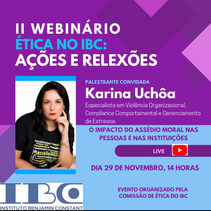 Órgão ao qual a comissão de ética setorial promotora é vinculada: Instituto Benjamin Constant (IBC) Evento: II Webinário Ética no IBC: Ações e Reflexões Data e horário: 29 de novembro de 2024, 14h