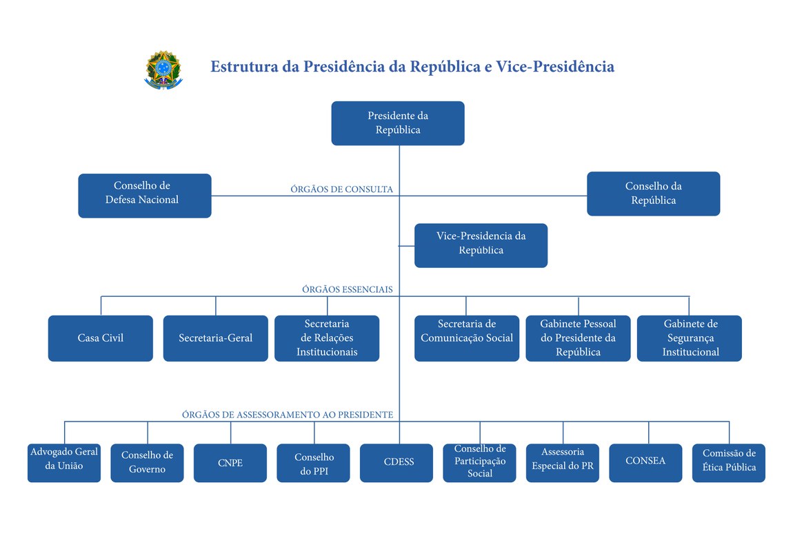 A Presidência da República, órgão da Administração Direta do Poder Executivo da União, teve a organização básica de seus órgãos estabelecida pela Lei nº 14.600, de 19 de junho de 2023. Integram a PR: