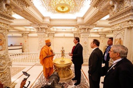 Jair Bolsonaro durante visita ao Templo de Akshardham Foto: Alan Santos/PR