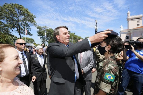 Em Campinas (SP), o Presidente Jair Bolsonaro acompanhou, neste sábado (20), as cerimônias de entrada de novos alunos pelo portão da Escola Preparatória de Cadetes do Exército (EsPCEX) e de entrega das boinas aos estudantes.