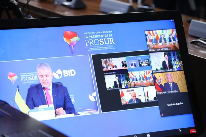 “A ação dos Estados soberanos para mitigar os efeitos nocivos da Covid-19 na economia e na sociedade tem se mostrado decisiva. Temos contado também com o apoio fundamental de instituições internacionais de crédito aliadas à nossa causa. Por essa razão, vemos como muito oportuna esta reunião do Prosul às vésperas da Assembleia Anual do Banco Interamericano de Desenvolvimento”, afirmou.
