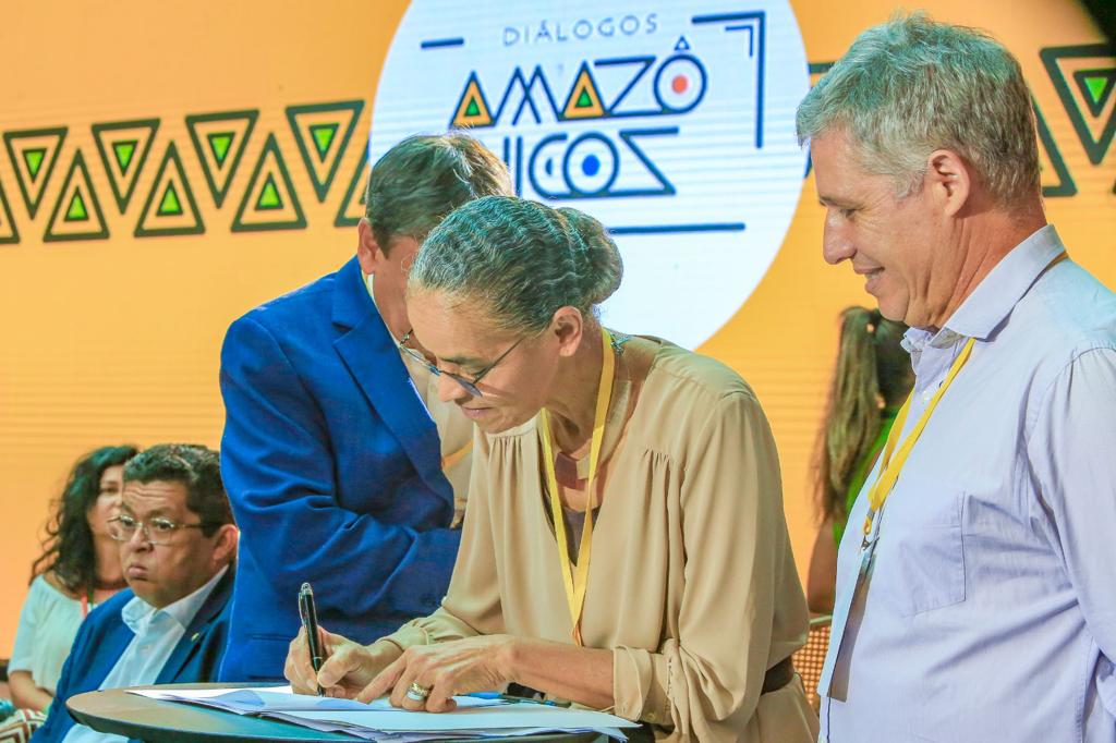 BOLSA VERDE — Também durante a reunião do Conselhão, a ministra Marina Silva e os ministros Paulo Teixeira e Wellington Dias assinaram acordo interministerial de cooperação técnica em torno do Bolsa Verde, que remunera famílias em situação de vulnerabilidade social que atuam para a proteção da floresta.