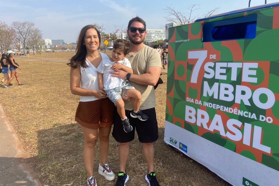 Paloma Carvalho, brasiliense de 41 anos e médica da família, acompanhou o desfile na companhia do marido, Luiz Eduardo Correia, e do filho de três anos, Rafael - Foto: Vinícius Neves / Secom PR
