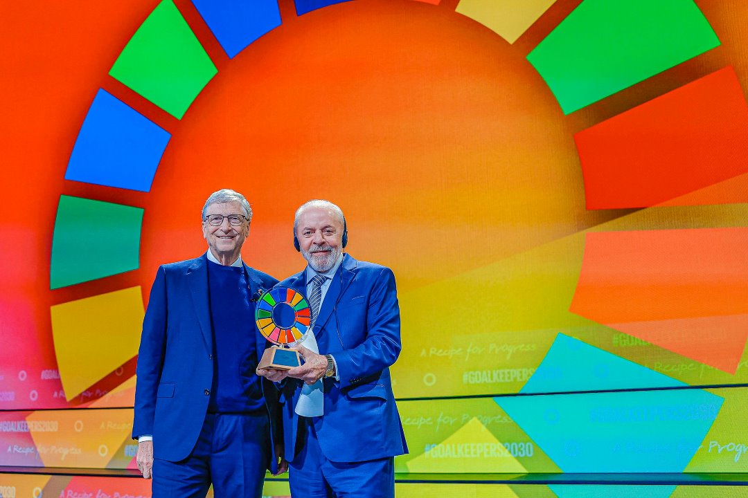 Bill Gates e presidente Lula durante a cerimônia de premiação anual da iniciativa Goalkeepers, organizada pela Fundação Bill e Melinda Gates, em Nova York