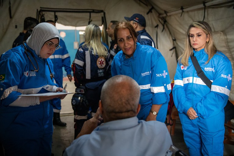 SAÚDE - Outra equipe que atua na chegada dos resgatados do Líbano é a da Força Nacional do SUS, formada por médicos, enfermeiros e psicólogos que oferecem cuidados quanto à saúde física e mental dos repatriados. A equipe recebe uma espécie de manual de costumes do país, envolvendo cultura, comportamento, vestimenta, linguagem, religião e alimentação para prestar um atendimento mais humanizado e acolhedor. Nos dois primeiros voos, os profissionais realizaram 346 atendimentos médicos, assistenciais e psicossociais aos brasileiros e familiares resgatados do Líbano. Entre os atendimentos, as maiores ocorrências foram de acolhimento, leve desidratação, primeiros cuidados psicológicos e crise hipertensiva.
