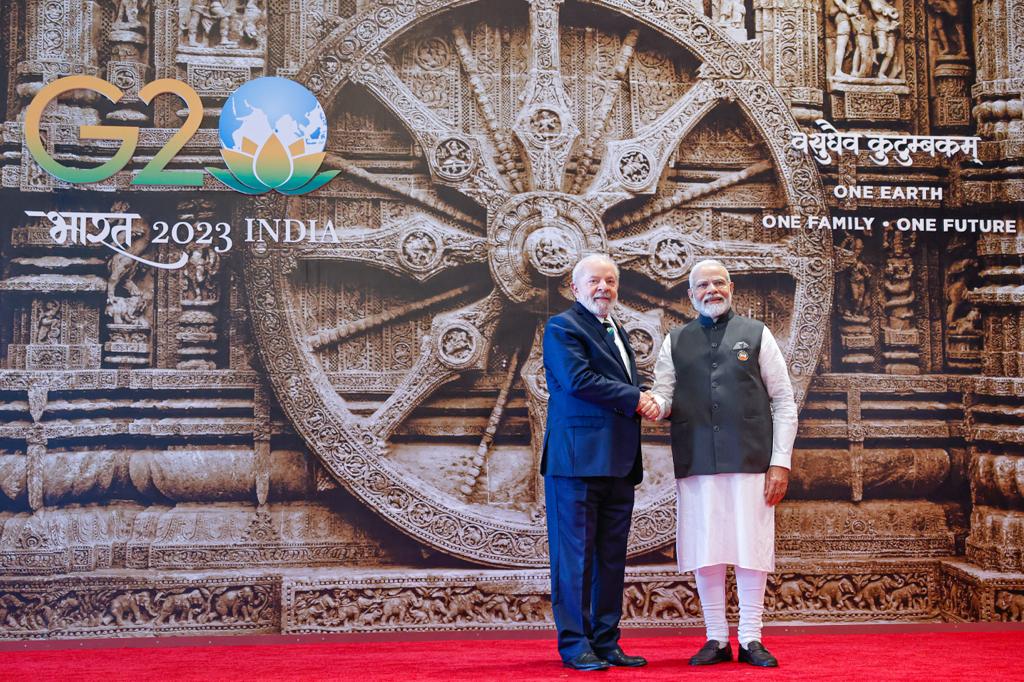 Presidente Lula é recebido pelo primeiro-ministro indiano, Narendra Modi, no Bharat Mandapam para Plenária da Cúpula do G20