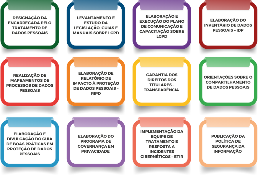 Diversas atividades para a implementação da LGPD já foram executadas. Dentre essas, destacam-se: