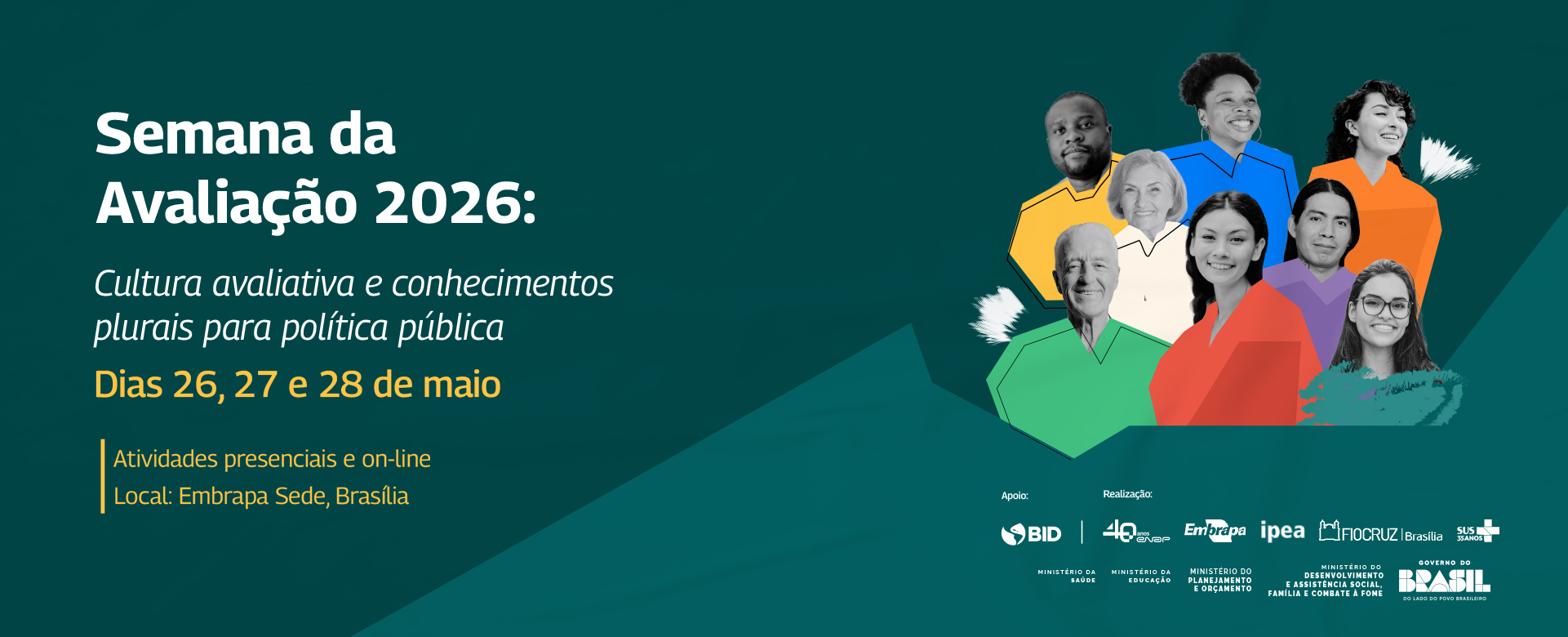 A Semana da Avaliação 2026 é resultado da parceria entre o MPO, a Escola Nacional de Administração Pública (Enap), o Instituto de Pesquisa Econômica Aplicada (IPEA), a Fundação Oswaldo Cruz – Fiocruz Brasília, o Ministério do Desenvolvimento e Assistência Social, Família e Combate à Fome, o Ministério da Saúde, o Ministério da Educação, a Empresa Brasileira de Pesquisa Agropecuária (Embrapa), e apoio do Banco Interamericano de Desenvolvimento (BID).