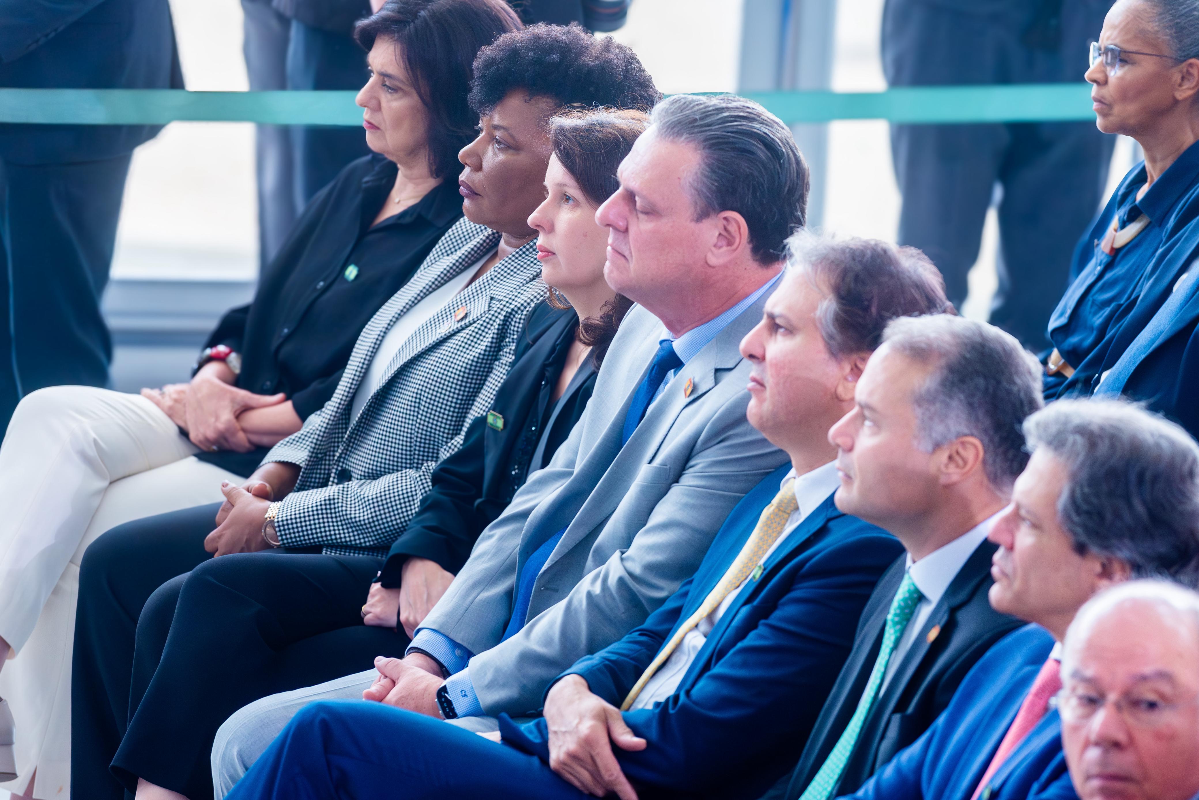 No Palácio do Planalto, o presidente Luís Inácio Lula da Silva reuniu, nesta quarta-feira (8), ministros, representantes do Legislativo e Judiciário, políticos e aliados do governo para cerimônia que marcou os dois anos dos atos golpistas que ocorreram na capital em 8 de janeiro de 2023. A ministra em exercício do Ministério de Portos e Aeroportos, Marina Pescatori, participou do evento ao lado das demais autoridades.
