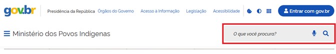 O campo destacado “O que você procura?” permite que o usuário localize com facilidade a informação que deseja.