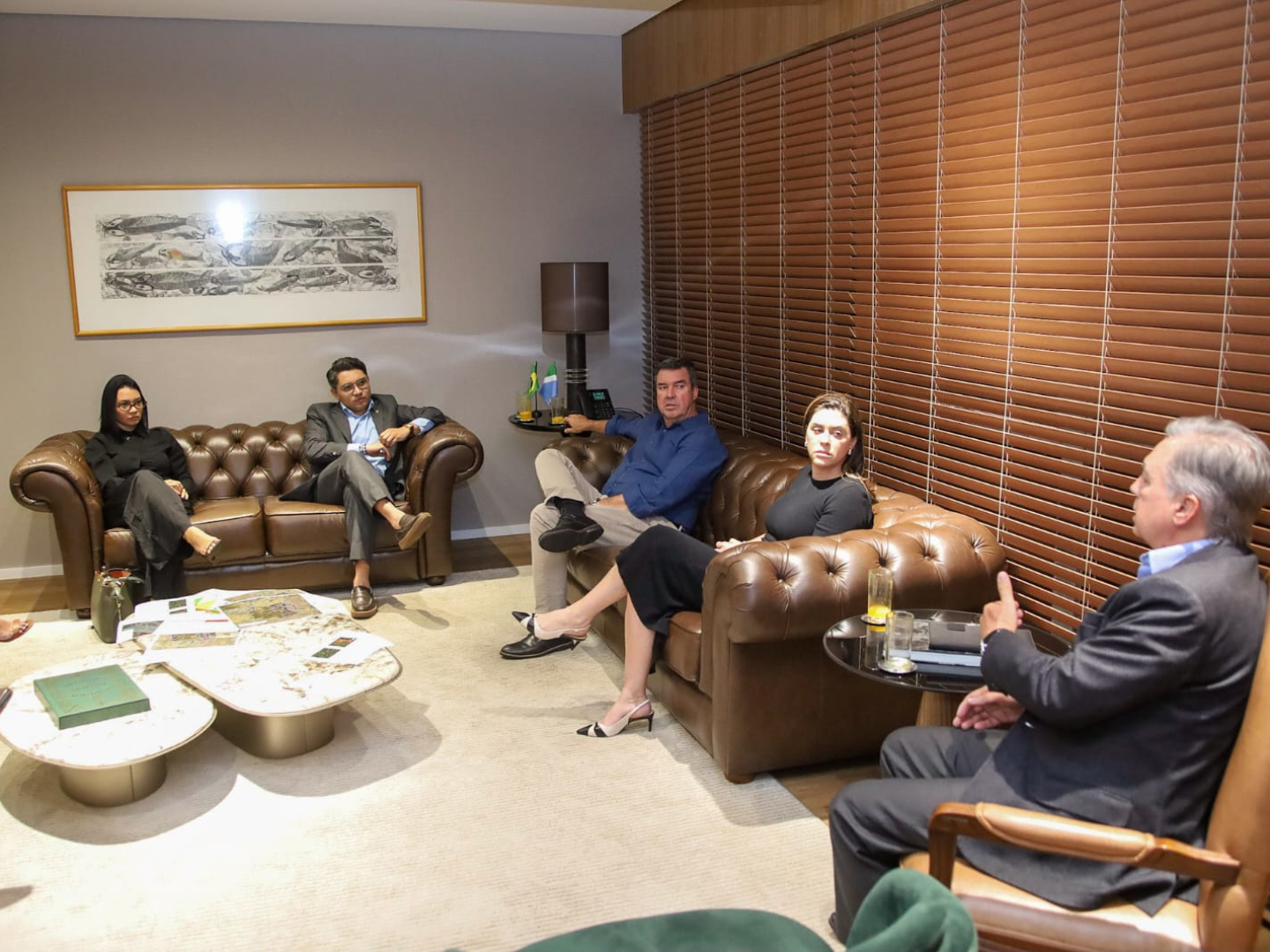 Acompanhados de equipe técnica, Eloy Terena, secretário-executivo do MPI, e o diretor do Departamento de Mediação e Conciliação de Conflitos Fundiárias Indígenas (DEMED), Avanilson Karajá, estiveram com o governador Eduardo Riedel; o secretário de Justiça e Segurança Pública, Antonio Carlos Videira; e a secretária de Cidadania, Viviane Luiza da Silva, para debater ações e encaminhamentos e assim mediar os conflitos fundiários.