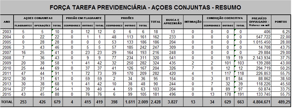 Operações da Força Tarefa Previdenciária - 2015