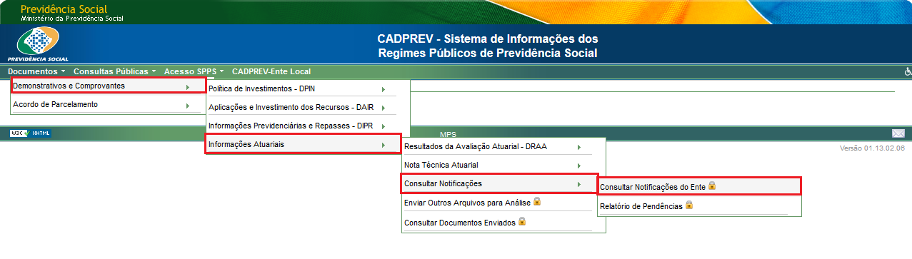 O referido “manual/orientações” discorre sobre as medidas de consulta e resposta às notificações do Ente disponibilizado no CADPREV WEB versão 1.12.0. Essa nova versão disponibiliza ao Ente um módulo que permite consultar as notificações e pendências correspondentes aos documentos, demonstrativos e outros enviados ao SPPS, assim como, quanto à situação do Equilíbrio Financeiro e Atuarial – as respostas e argumentos devem impreterivelmente ser realizados via sistema, pois possibilita a inserção de arquivos de modo ágil e eficaz facilitando o desenvolvimento do processo.