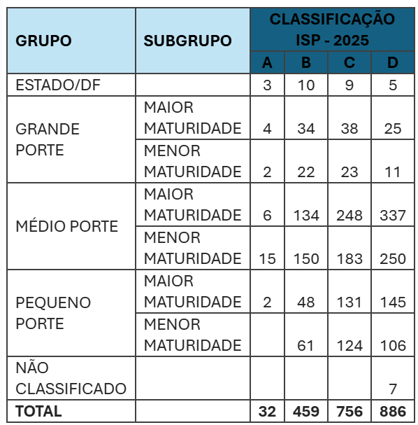 Devido às alterações na metodologia e na composição do ISP-2025, os resultados não são comparáveis com os obtidos nos índices dos anos anteriores.