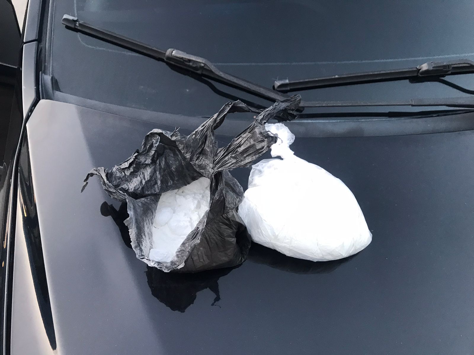 Durante a averiguação dos documentos e vistoria no carro, foram encontradas duas sacolas contendo cocaína e um celular quebrado, com pedaços ainda dentro do automóvel.