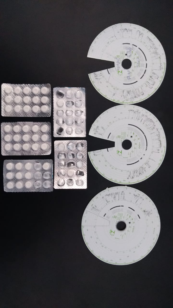 Neste momento, foram encontradas quatro cartelas de Nobésio Extra Forte, sendo uma delas vazias, e outras duas cartelas de Nobésio Sem Limites. Ao todo, foram 43 comprimidos apreendidos. O motorista afirmou que faz uso das substâncias há cinco anos, com o intuito de realizar viagens mais longas.