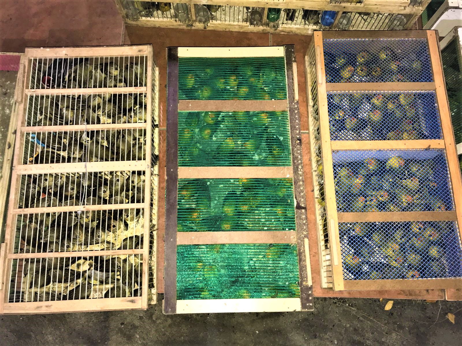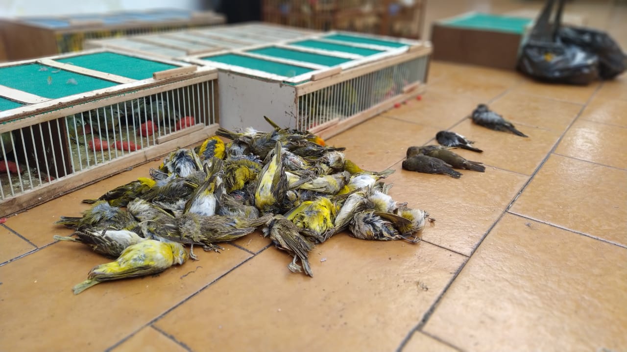 As aves estavam aglomeradas em pequenas gaiolas. A situação degradante de aprisionamento e temperatura elevada dificultava a respiração, a mobilidade e descanso dos pássaros, além disso foi observado que a higienização era precária. Oitenta e três deles já estavam mortos.