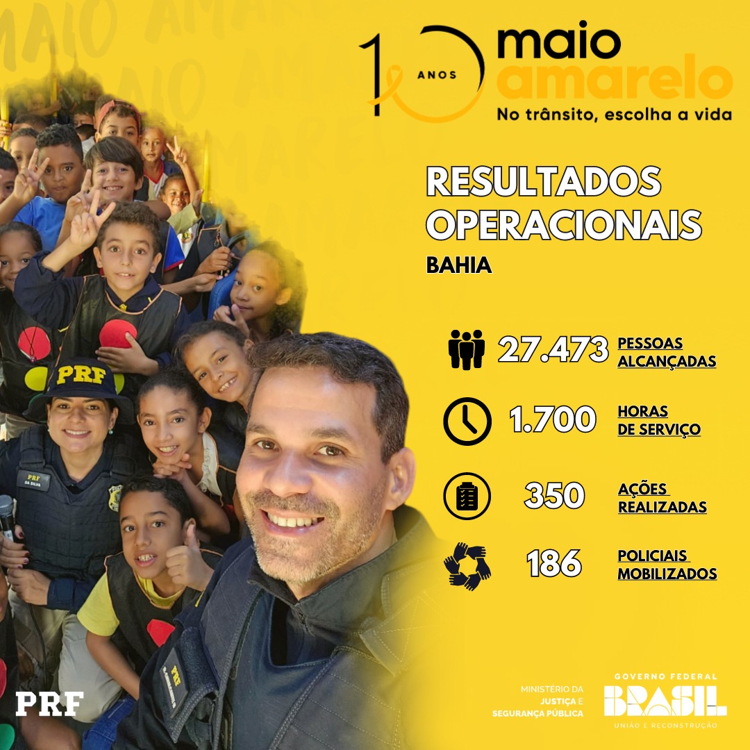 A Polícia Rodoviária Federal (PRF) na Bahia, finalizou com sucesso mais uma edição da Campanha Maio Amarelo. As atividades foram desenvolvidas por todas as Delegacias do órgão no estado.