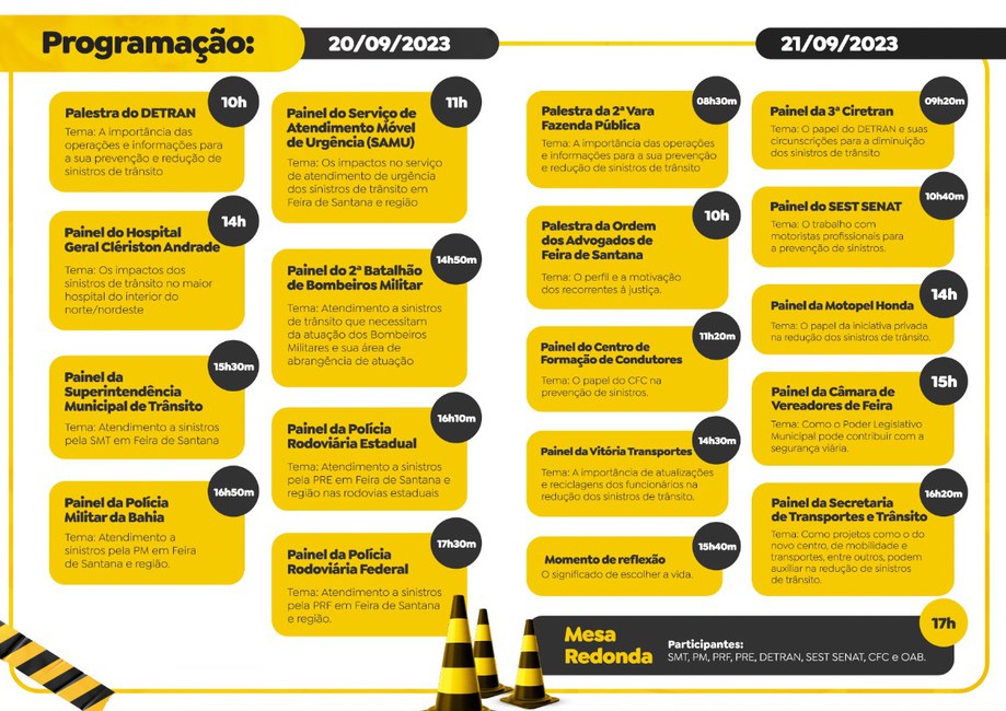 Acontece nos dias 20 e 21 de setembro no auditório do SEST/SENAT, o Primeiro Seminário de Saúde em Trânsito, organizado pela Prefeitura de Feira de Santana em conjunto com a Superintendência Municipal de Trânsito. O evento reune diversas autoridades e instituições civis em um importante fórum de discussão sobre a segurança viária na região. Um dos destaques do evento foi a participação ativa da Polícia Rodoviária Federal (PRF), que trouxe sua expertise para a promoção de um trânsito mais seguro.