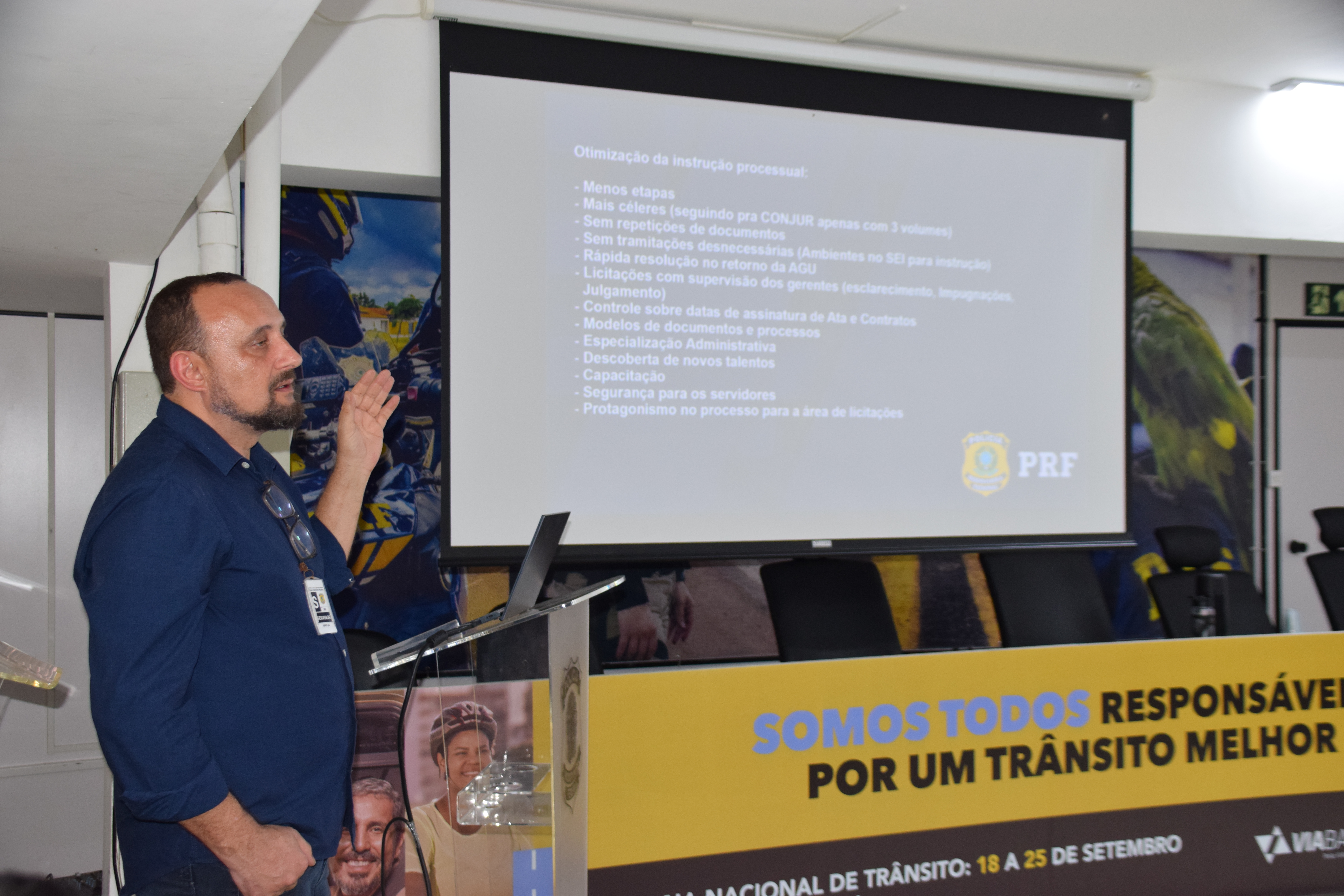 Na tarde de hoje (02), foi realizada a apresentação do Eixo de Contratações no auditório da Superintendência Regional da Polícia Rodoviária Federal na Bahia (SPRF-BA), em Salvador, capital baiana.