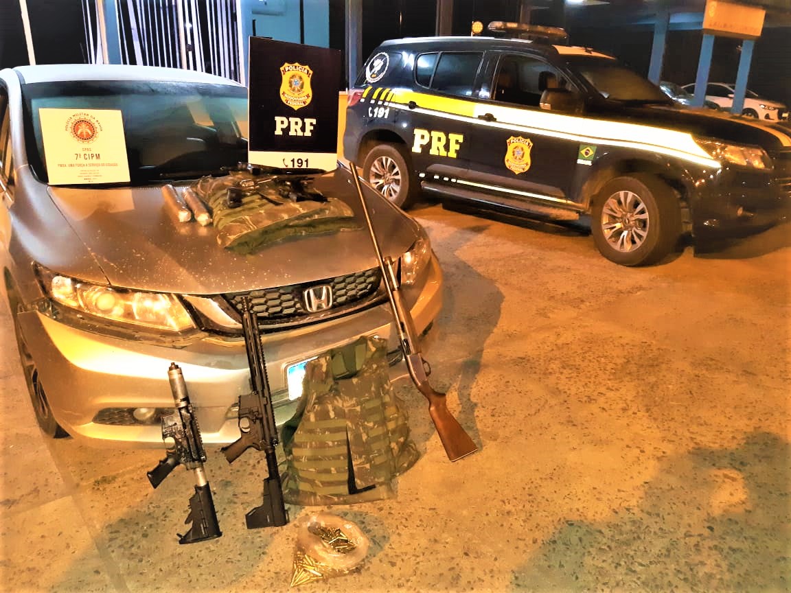 Durante a abordagem, os policiais perceberam um nervosismo incomum por parte dos ocupantes, como também respostas desencontradas em relação ao destino e motivo da viagem, o que levou as equipes a aprofundarem a fiscalização e acabaram descobrindo o arsenal bélico no interior do carro.
