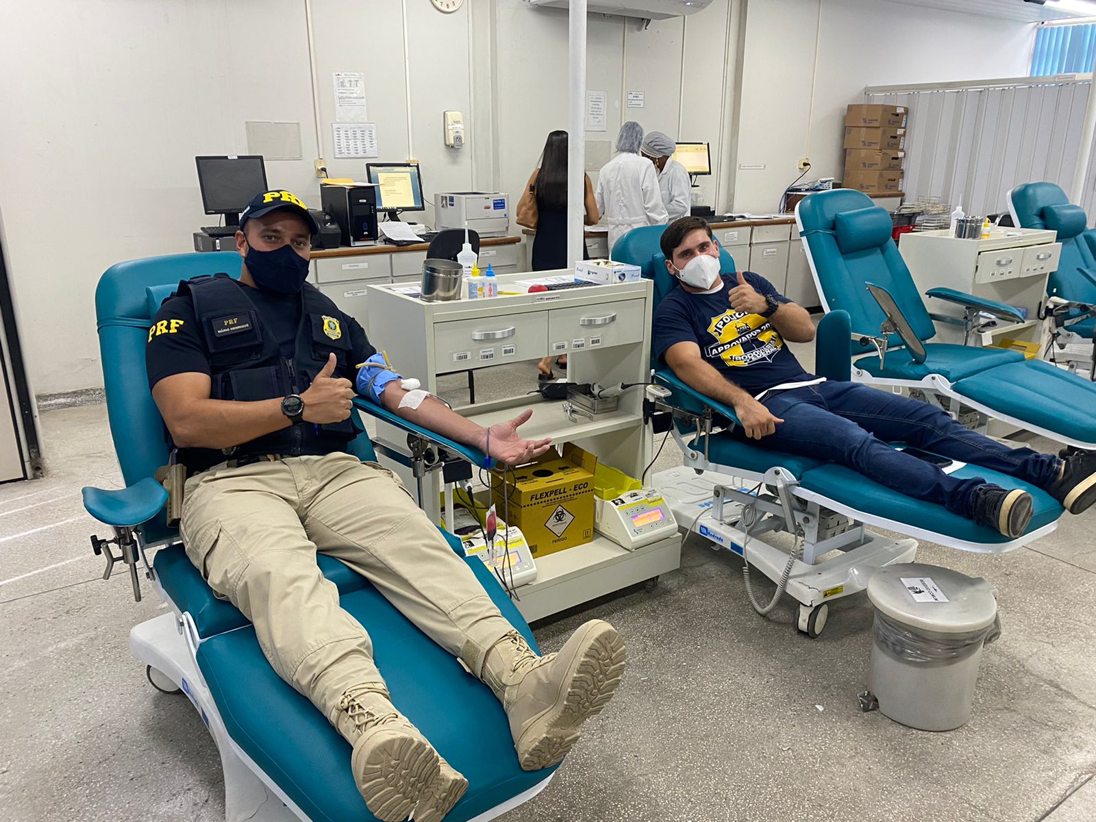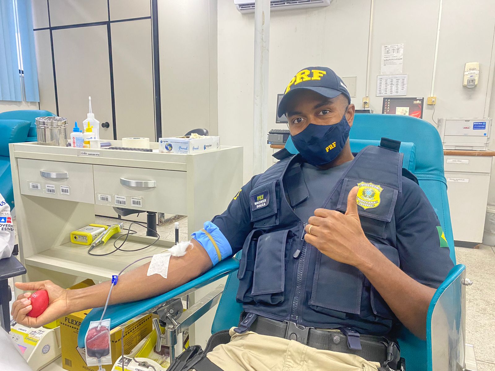 Nesta quinta-feira (27), policiais rodoviários federais estiveram na Fundação de Hematologia e Hemoterapia do Estado da Bahia (HEMOBA) para participar da campanha 5ml de esperança, focada na doação de medula óssea, entretanto, devido ao baixo estoque de bolsas de sangue no local, se engajaram na missão de realizar, mais uma vez, a doação de sangue.