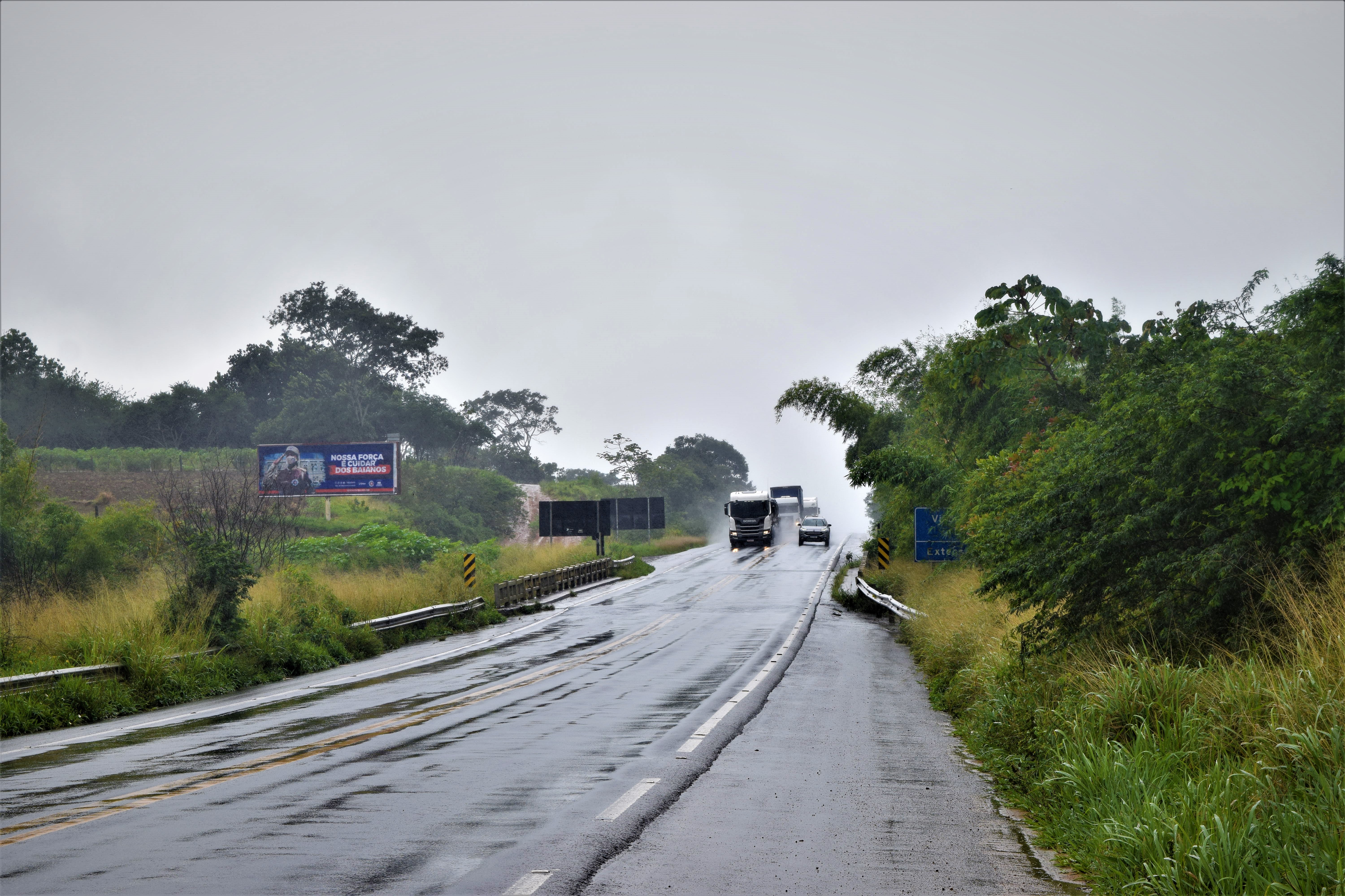 Não ultrapasse em faixa contínua, sinalização típica de locais com pontes e trechos de visibilidade restrita (curvas e aclives);
