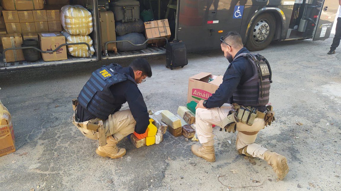 Maconha é apreendida com passageiro de ônibus na BR 116 em Feira de Santana (BA)