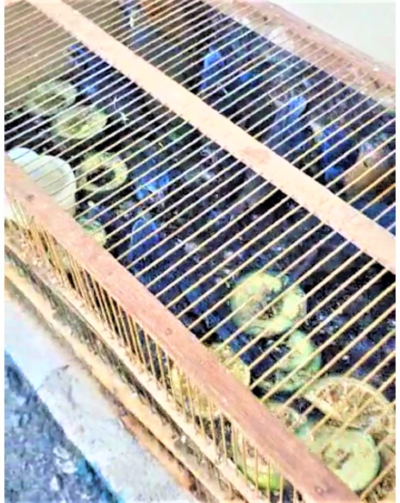 Durante os procedimentos de fiscalização, os policiais realizaram uma revista minuciosa no veículo e foram encontradas 40 aves que estavam amontoadas e aprisionadas dentro de gaiolas, tornando o confinamento sem a ventilação adequada e em ambiente escuro, ensejando total falta de cuidados, higiene e maus tratos.