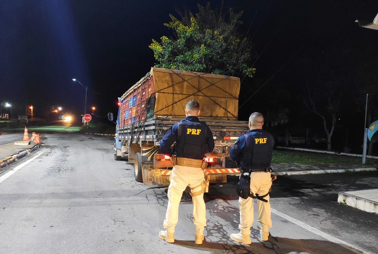 Durante fiscalização no trecho, os PRFs abordaram um caminhão conduzido por um homem e ocupado por um ajudante e por uma jovem.