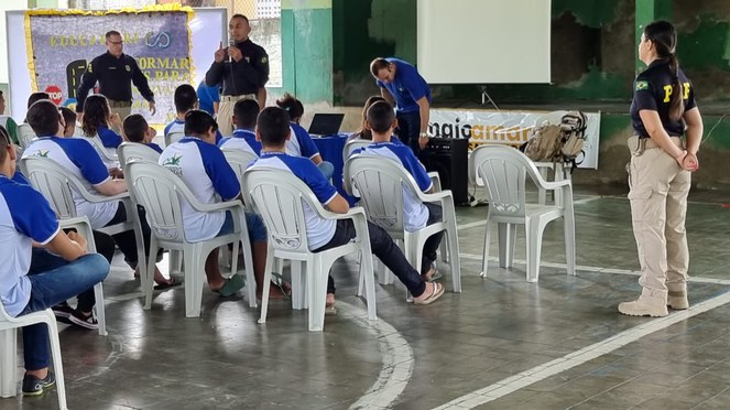 A Polícia Rodoviária Federal (PRF) realizou na manhã de hoje (30) uma ação educativa para crianças de 6 a 14 anos na Escola Valmique Sampaio em Itaitinga. O evento ocorreu em alusão ao Maio Amarelo, uma campanha nacional que perdurou todo este mês.