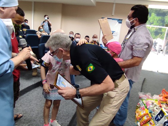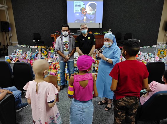 Policiais, voluntários e representantes das instituições se reuniram na manhã de hoje para celebrar a solidariedade. Durante dias de arrecadação e eventos em prol das crianças com câncer, as ações da PRF e parceiros já somaram a monta de mais de 600 brinquedos e 700 itens de alimentação e higiene que serão destinados aos pequeninos e suas famílias. As instituições beneficiadas são o Lar Amigos de Jesus e a Casa do Menino Jesus.