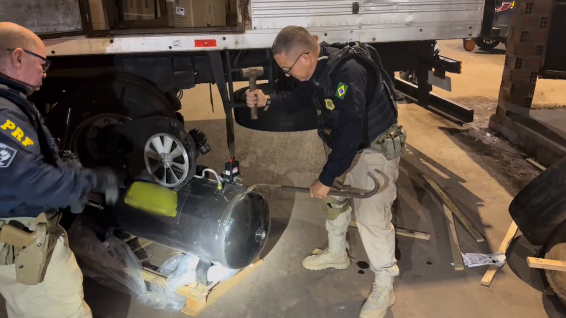 Durante a busca veicular, ao abrir o compartimento de carga do caminhão, os policiais sentiram um cheiro muito forte advindo de um compressor de ar que estava sendo transportado. Ao abrirem o equipamento, encontraram diversos tabletes de drogas escondidos no interior. Ao todo, foram apreendidos 21,1 kg de haxixe e 19,9 kg de skunk, totalizando 41 kg de substâncias entorpecentes.