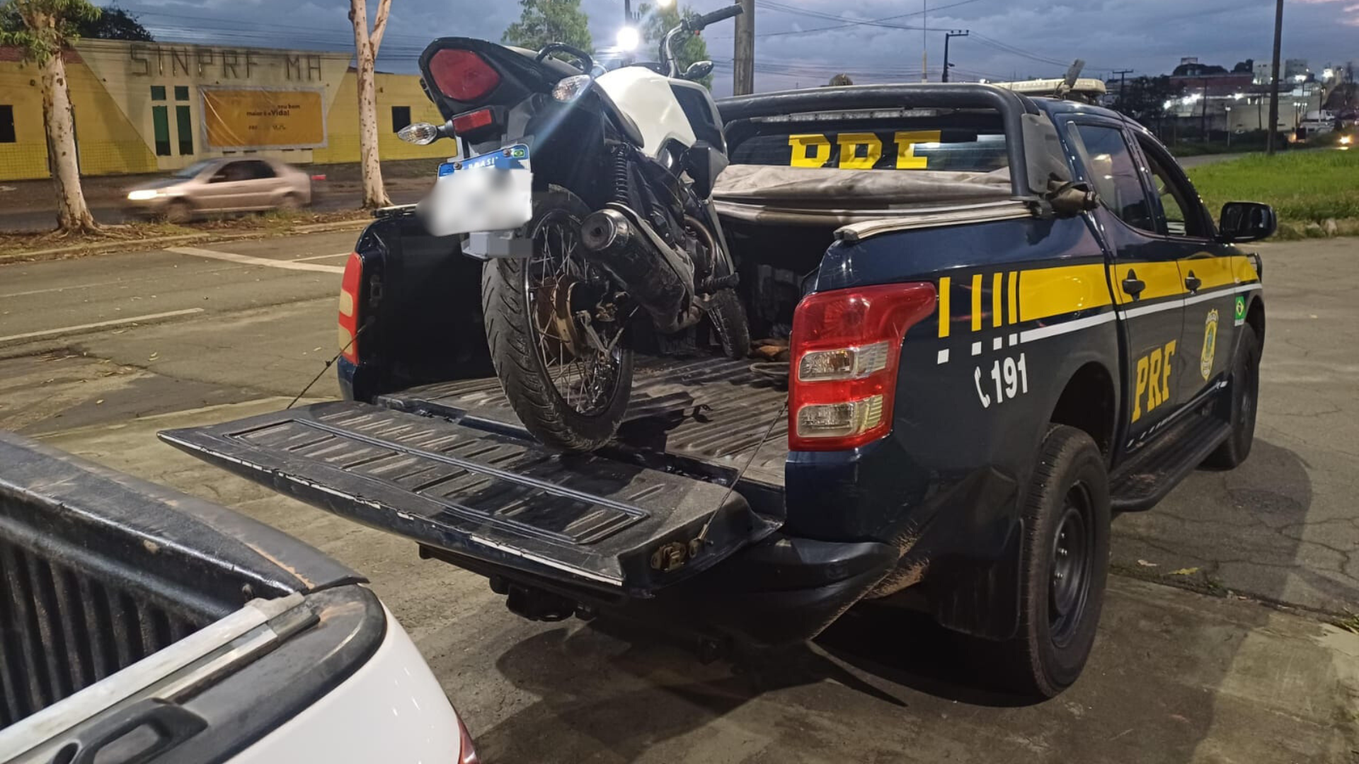 A primeira ocorrência foi registrada por volta das 16h, no km 12 da BR-135. Durante fiscalização, uma equipe da PRF avistou uma motocicleta Honda/POP 100, de cor preta e placas de Pernambuco, estacionada em frente a um comércio local. Ao se aproximarem, os policiais perceberam que a placa estava totalmente em desacordo com as normas do Conselho Nacional de Trânsito (CONTRAN).
