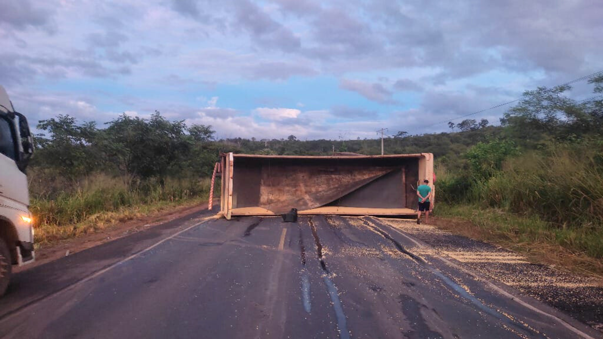 O veículo envolvido trata-se de uma carreta composta por uma Scania acoplada a dois semirreboques. O tombamento atingiu apenas o último semirreboque da composição.