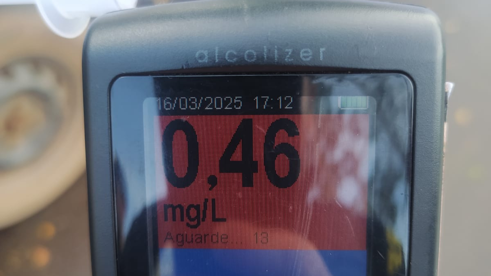 A terceira ocorrência se deu durante a abordagem de uma motocicleta. O condutor apresentava sinais visíveis de embriaguez. Realizado o teste de alcoolemia, constatou-se o teor de 0,42 miligramas de álcool por litro de ar expelido pelos pulmões.