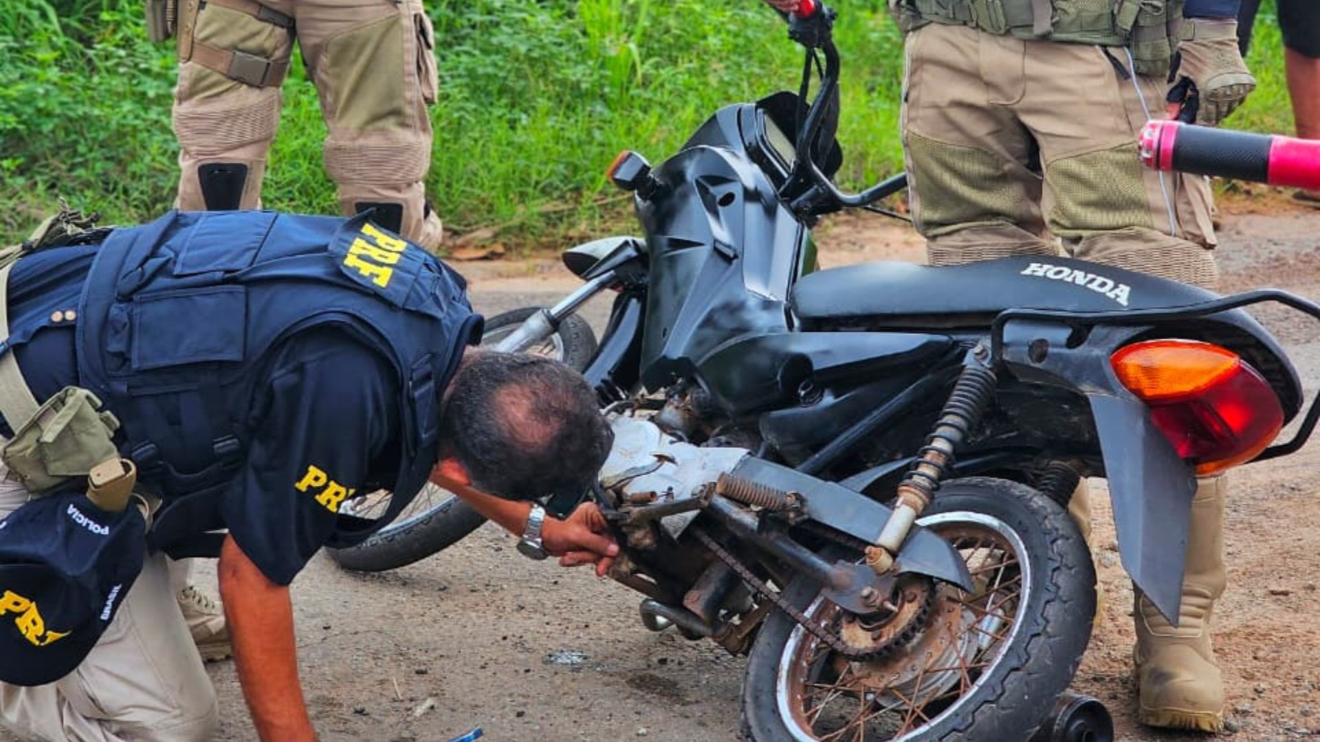 No sábado (7), por volta das 9h30, durante ações da Operação Rodovida 2025/2026, no km 299 da BR-316, no município de Pio XII (MA), uma equipe da PRF avistou uma motocicleta sem placa sendo conduzida por um homem sem capacete. Durante a fiscalização, foi constatado que o veículo estava totalmente adulterado, com os elementos identificadores em desacordo com o padrão original, impossibilitando sua identificação.