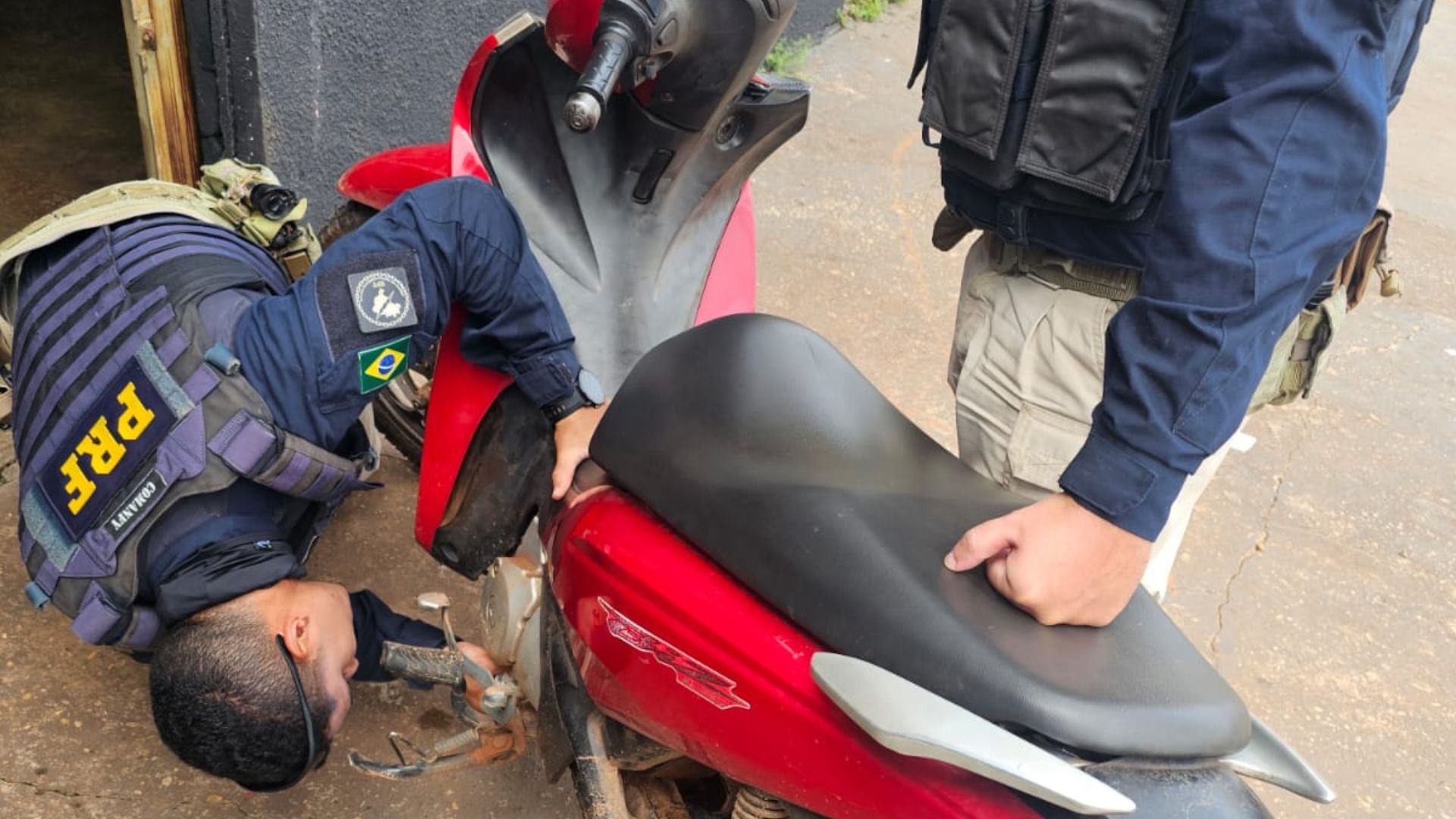 Ainda no domingo, por volta das 14h, a equipe realizava deslocamento administrativo pela Avenida Vitorino Freire, em Carolina (MA), quando visualizou uma motocicleta estacionada na área externa de uma residência em construção.
