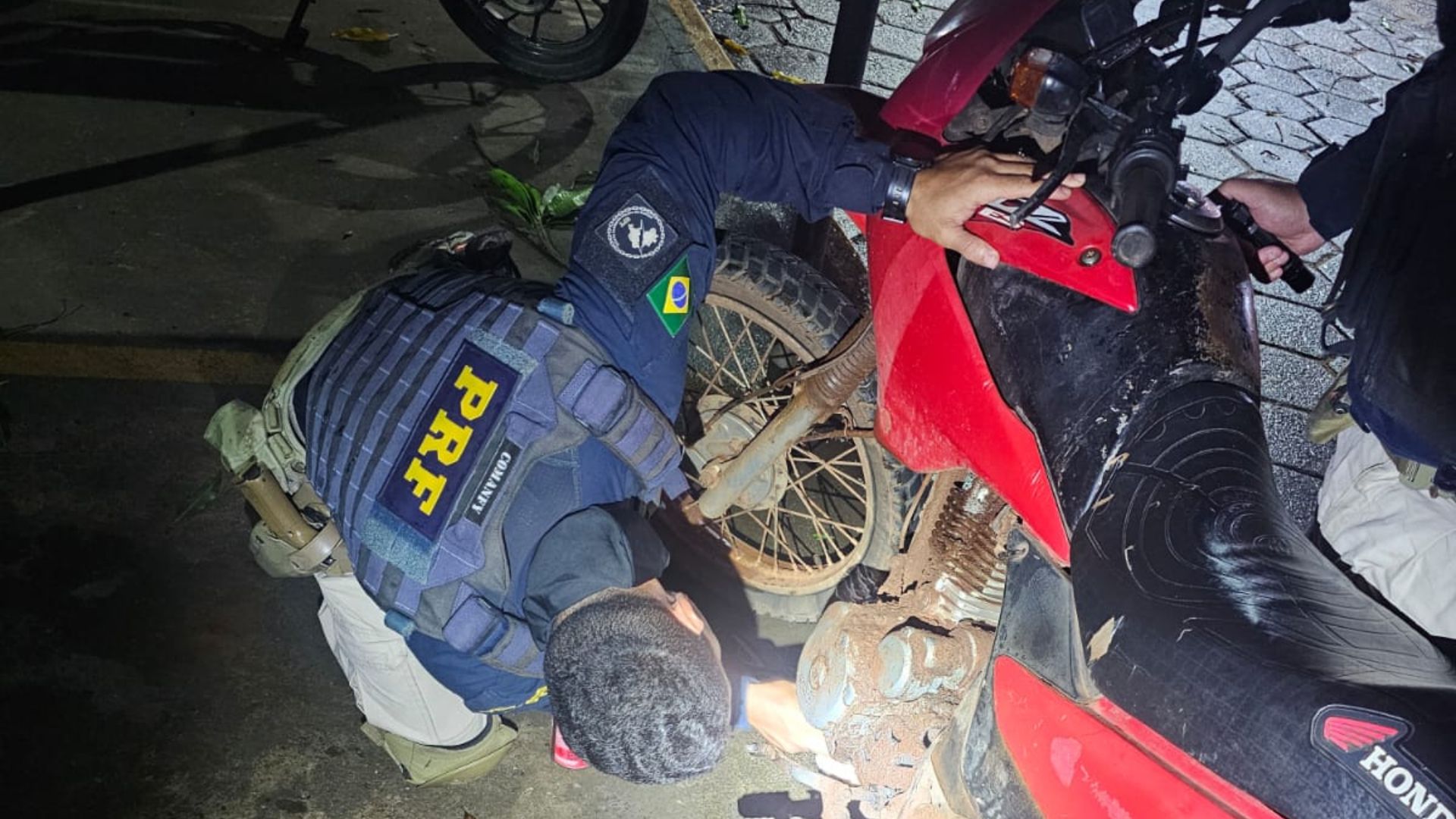 Ainda no sábado, por volta das 18h30, uma equipe realizava deslocamento administrativo na área urbana do município de Carolina (MA) quando visualizou uma motocicleta estacionada em via pública sem placa de identificação.
