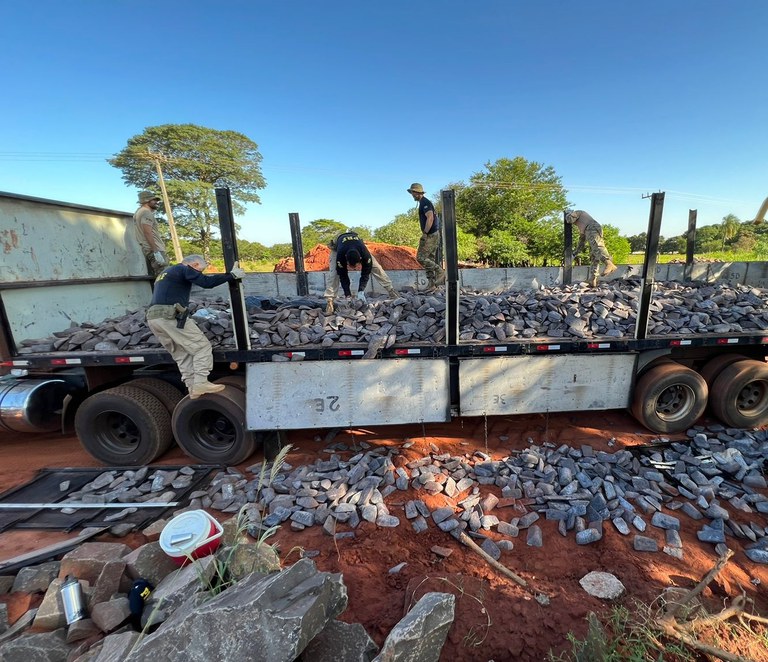 A equipe de policiais rodoviários federais abordou, no km 129 da BR-267, o caminhão Scania, atrelado a um reboque, em pane mecânica sobre a via. O condutor do caminhão estava acompanhado de uma mulher e a filha dela, menor de idade. O homem disse que havia carregado ferro gusa no caminhão, mas deu respostas contraditórias às perguntas dos policiais.