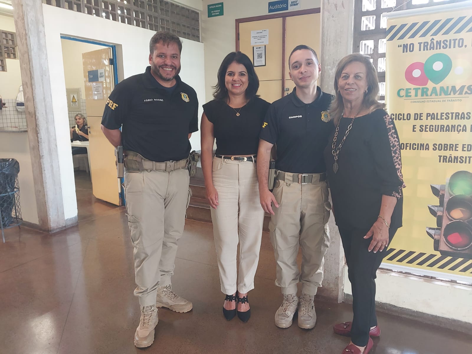 O ciclo de palestras contou com a participação do PRF Placidino, do Núcleo de Processamento de Infrações, que palestrou sobre alterações de característica em automóveis e veículos de carga, modificações em suas características básicas e implicações no trânsito e criminais, e do PRF Matheus Campos, chefe do Getran-MS, que discorreu sobre as ações da PRF-MS para a Educação para o Trânsito.