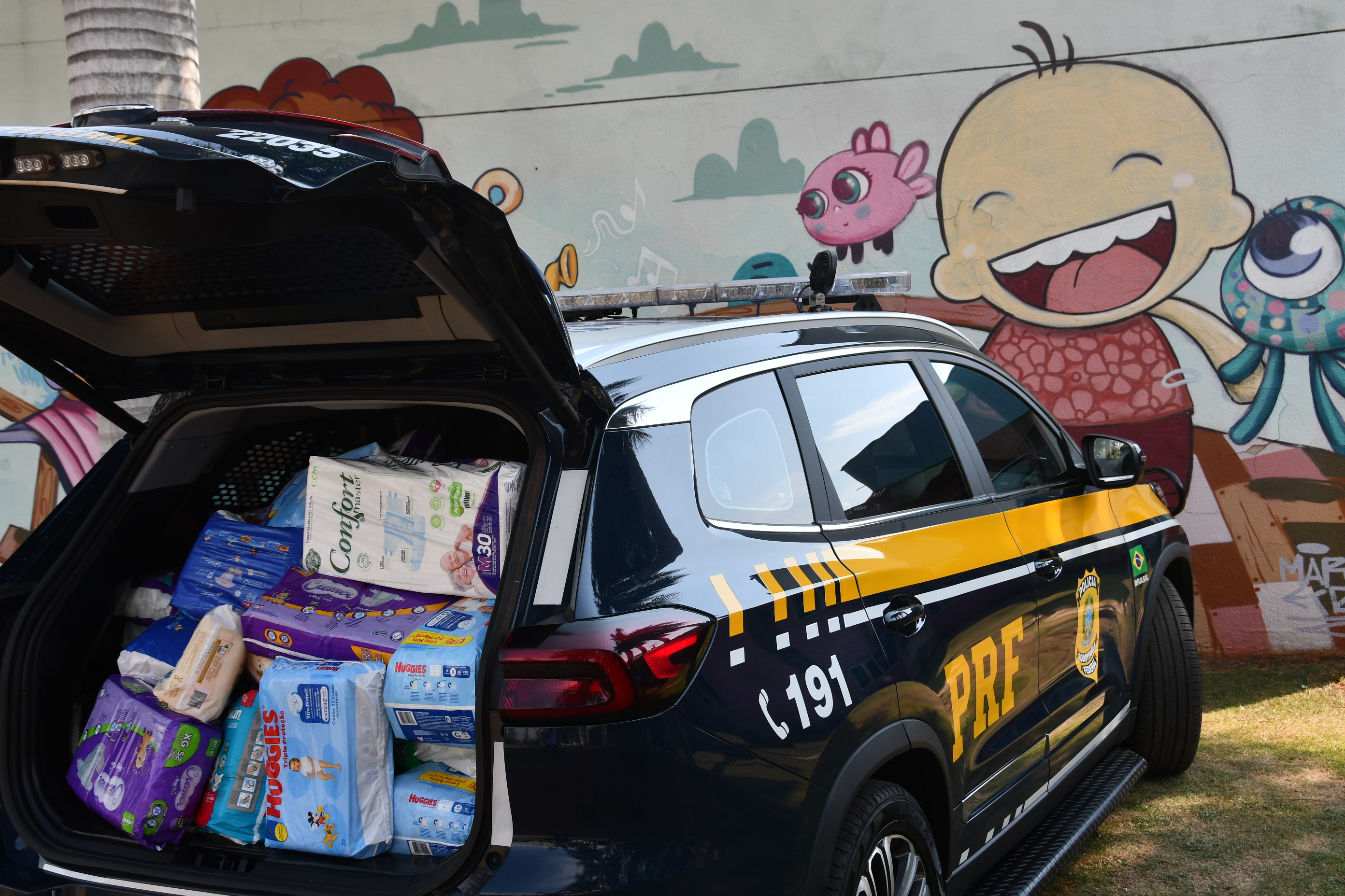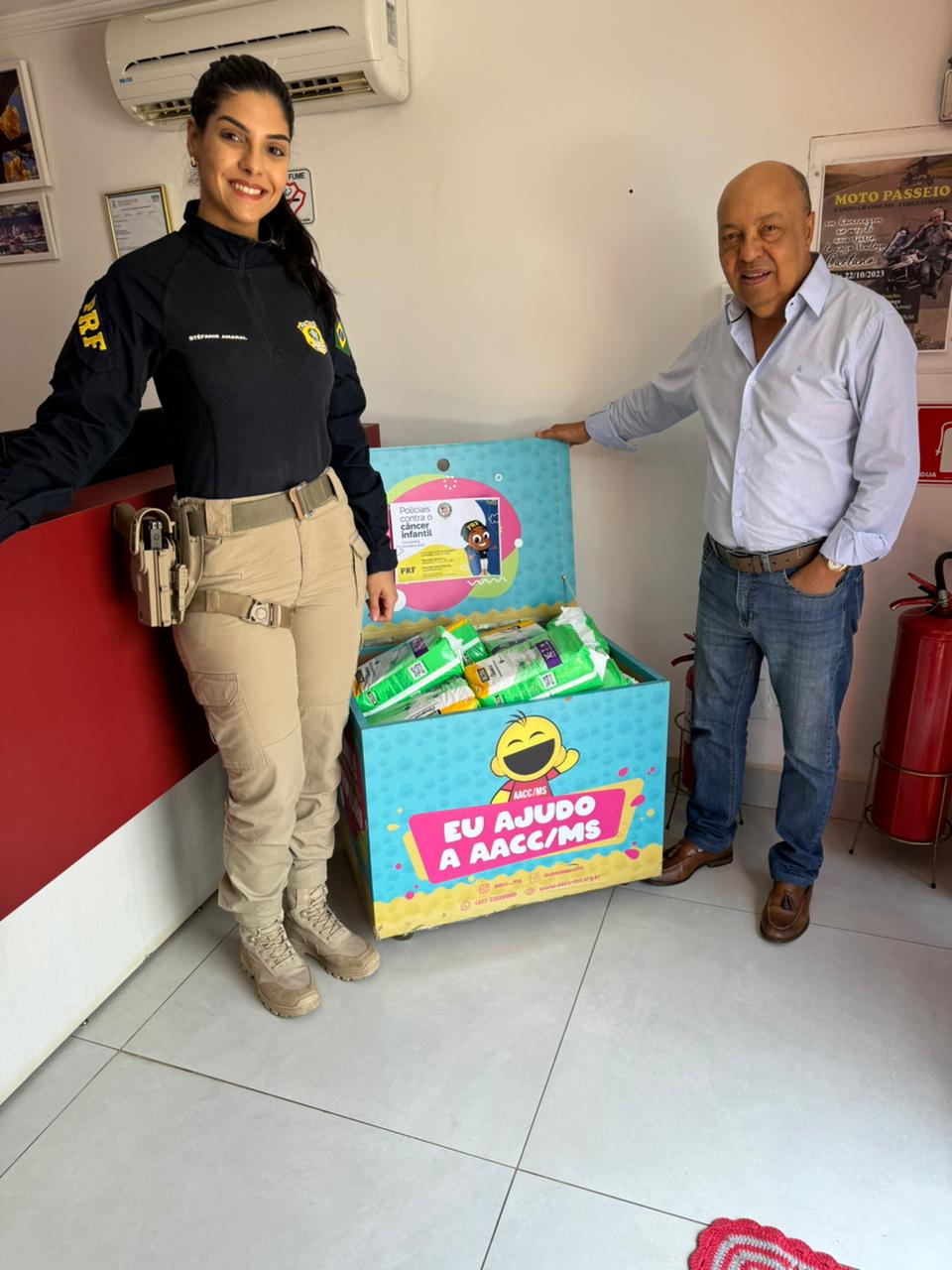 A Polícia Rodoviária Federal (PRF) realizou nesta quarta-feira (22) a entrega das fraldas arrecadadas da campanha Policiais Contra o Câncer Infantil 2023 em Campo Grande (MS). Com viaturas e muita diversão, nossos policiais tornaram a tarde das crianças atendidas pela AACC/MS mais alegre.