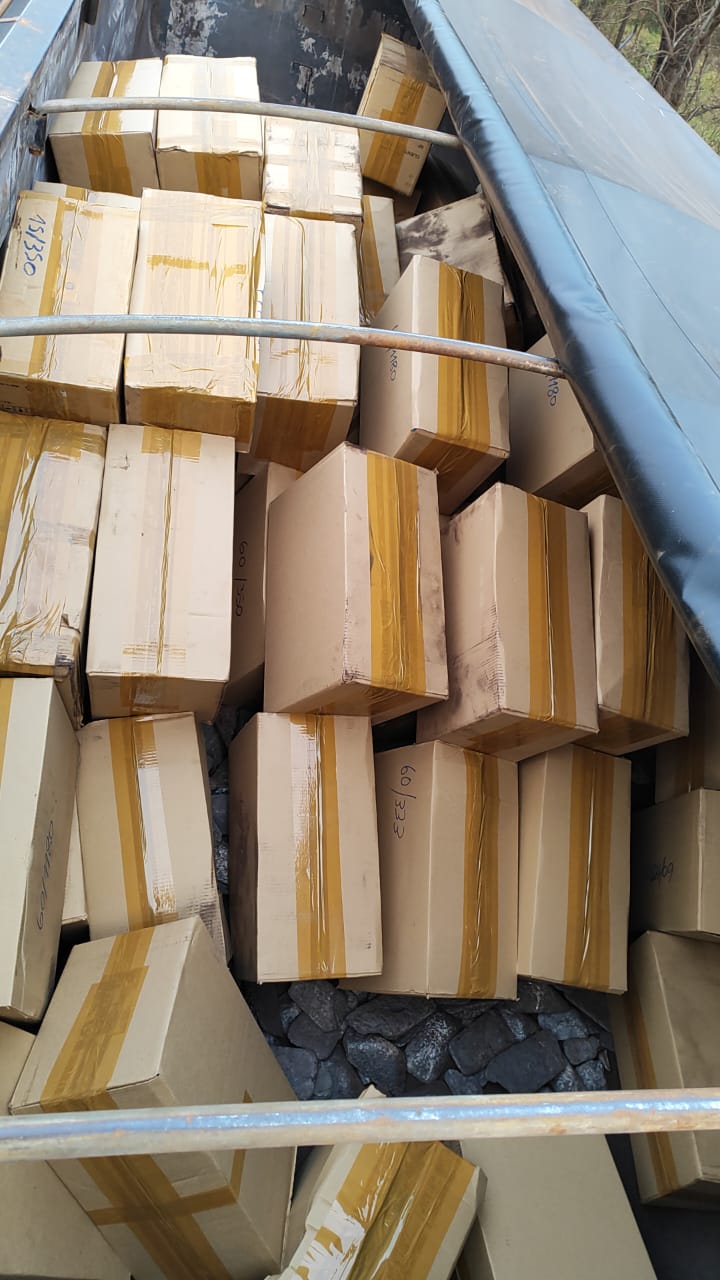 A Polícia Rodoviária Federal (PRF) apreendeu 3.380 celulares sem documentação fiscal, na tarde desta quinta-feira (5), em Água Clara (MS).