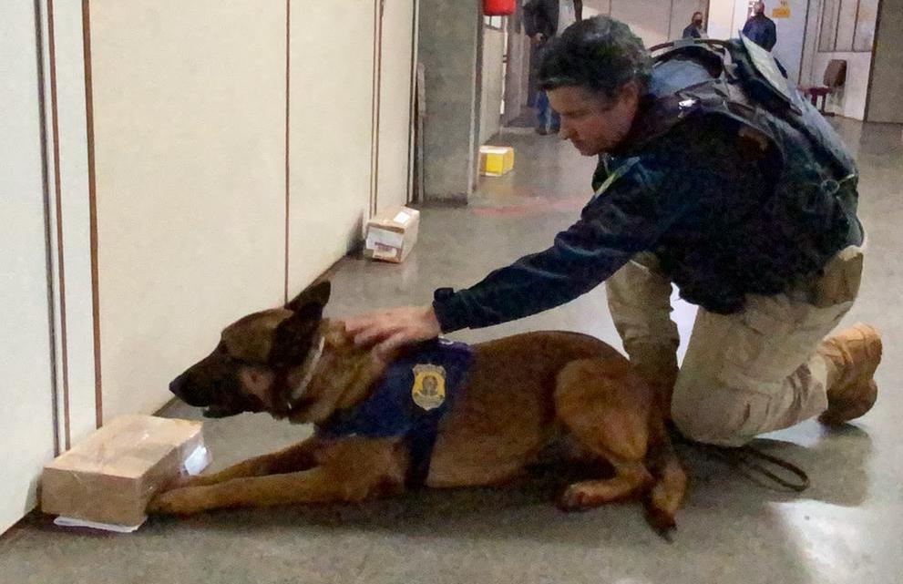 Após as suspeitas, os cães de faro de drogas da PRF, K9 Bella, K9 Cairo e K9 Zorro, todos da raça Pastor Belga Malinois, foram utilizados e indicaram positivamente para a presença de maconha do tipo “in natura”, com alto teor de THC, e cloridrato de cocaína, a forma mais cara da cocaína, em 08 (oito) encomendas postadas na cidade de Campo Grande e Corumbá. Entre as diversas caixas, uma delas chamou a atenção dos policiais pela forma como a droga estava ocultada. A cocaína foi localizada prensada dentro de uma engrenagem de peça agrícola, a qual iria para a Hong Kong.