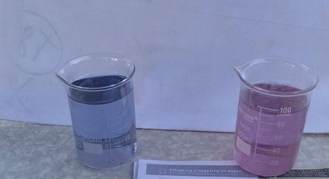 A predominância da cor azul na mistura indica presença de arla dentro dos padrões, ao passo que a cor em tom vermelho/róseo ou roxo indica predominância de produto adulterado.