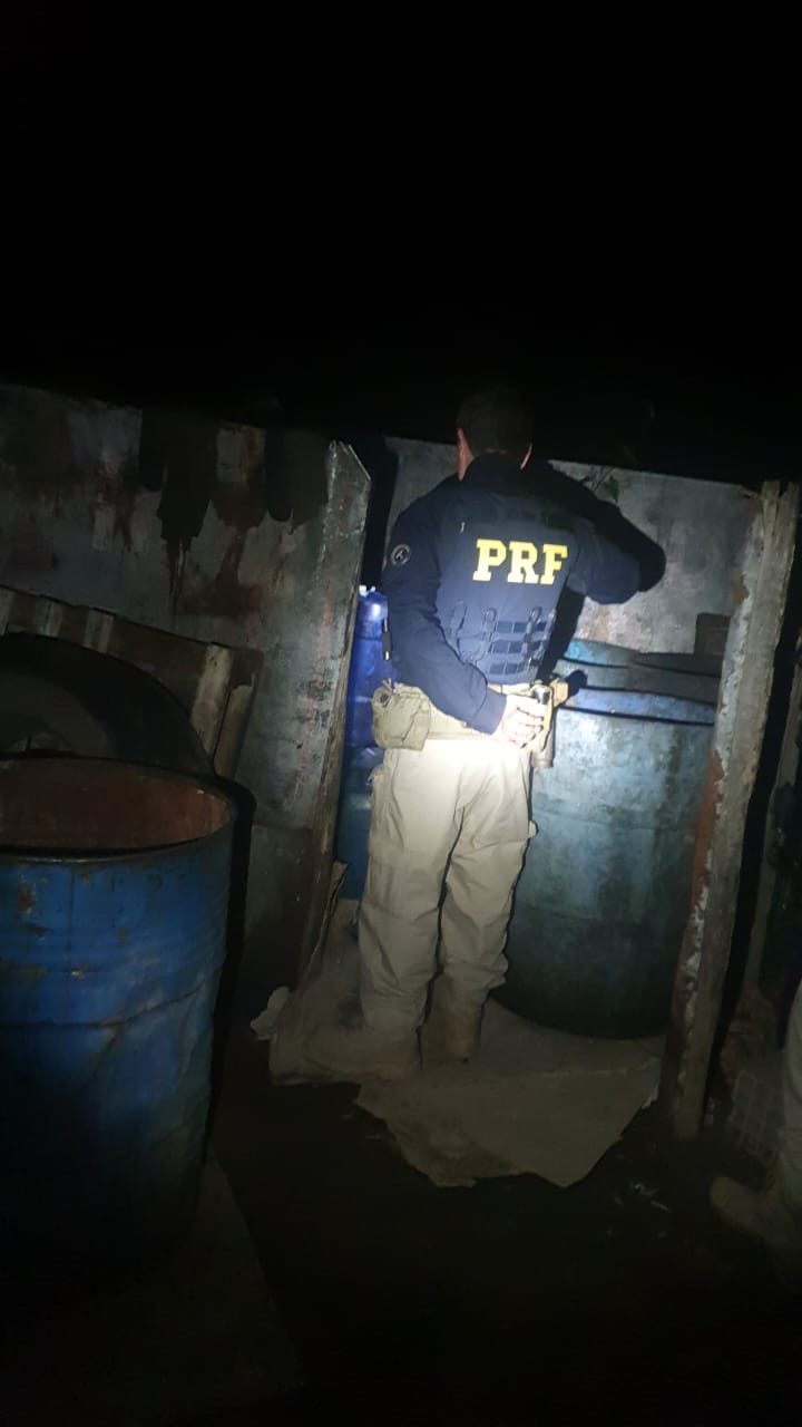 No interior do estabelecimento também foram encontrados aproximadamente 750 litros de óleo diesel, acondicionados em 25 tonéis de plástico.