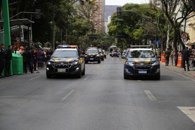 A Polícia Rodoviária Federal (PRF) participou do desfile da Independência, nesse dia 7 de setembro, demonstrando modernos equipamentos em exibição que aconteceu na principal avenida de Belo Horizonte (MG) e em mais 11 cidades de Minas Gerais.