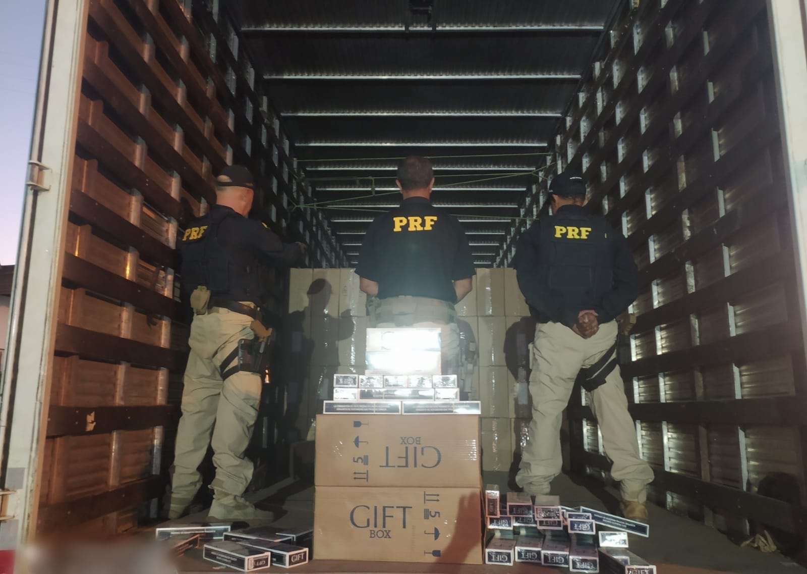 PRF apreende cerca de 340 mil maços de cigarros contrabandeados na BR 267 em Caxambu(MG)