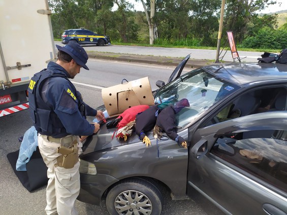 Durante ação de combate ao crime na área da Unidade Operacional da PRF, os policiais abordaram um veículo Fiat/Palio EX que era conduzido por um senhor de 42 anos e tinha como passageiro um outro senhor de 58 anos.